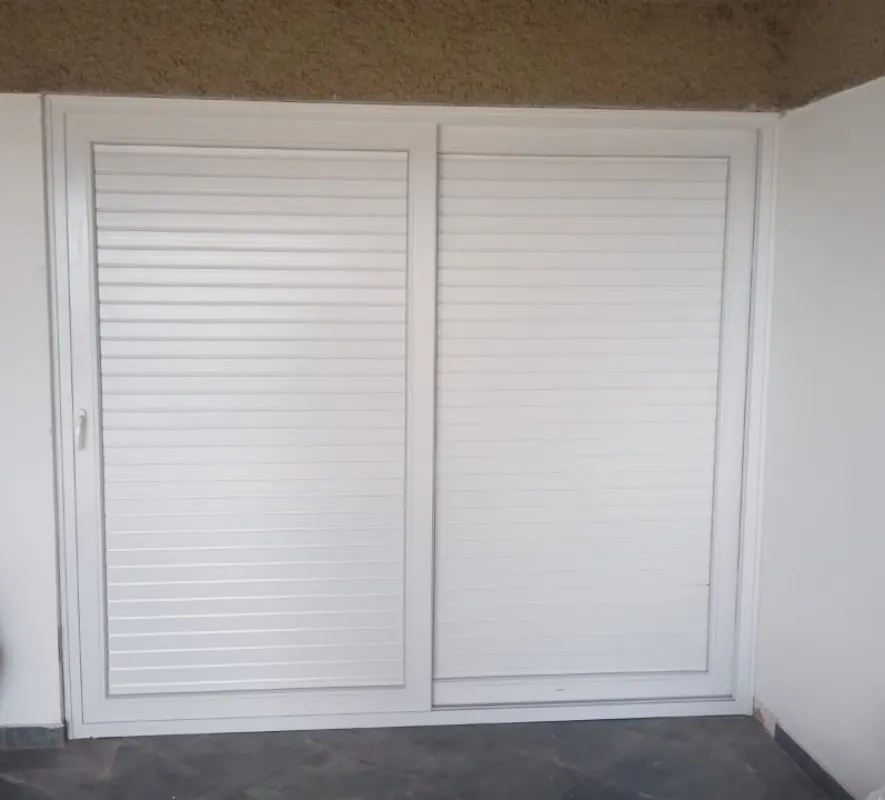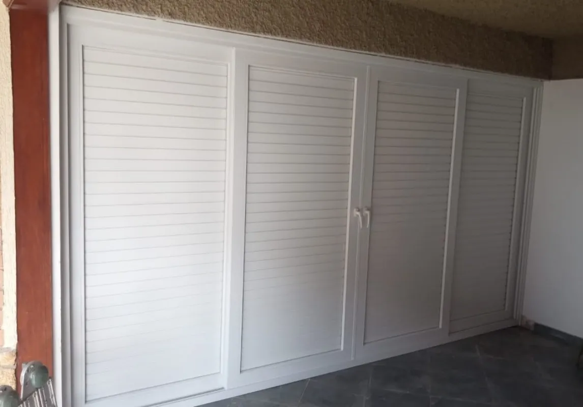 A porta de abrir com veneziana é uma porta equipada com lâminas ajustáveis que permitem controle de ventilação e entrada de luz, protegendo contra chuva e proporcionando conforto ambiental.
